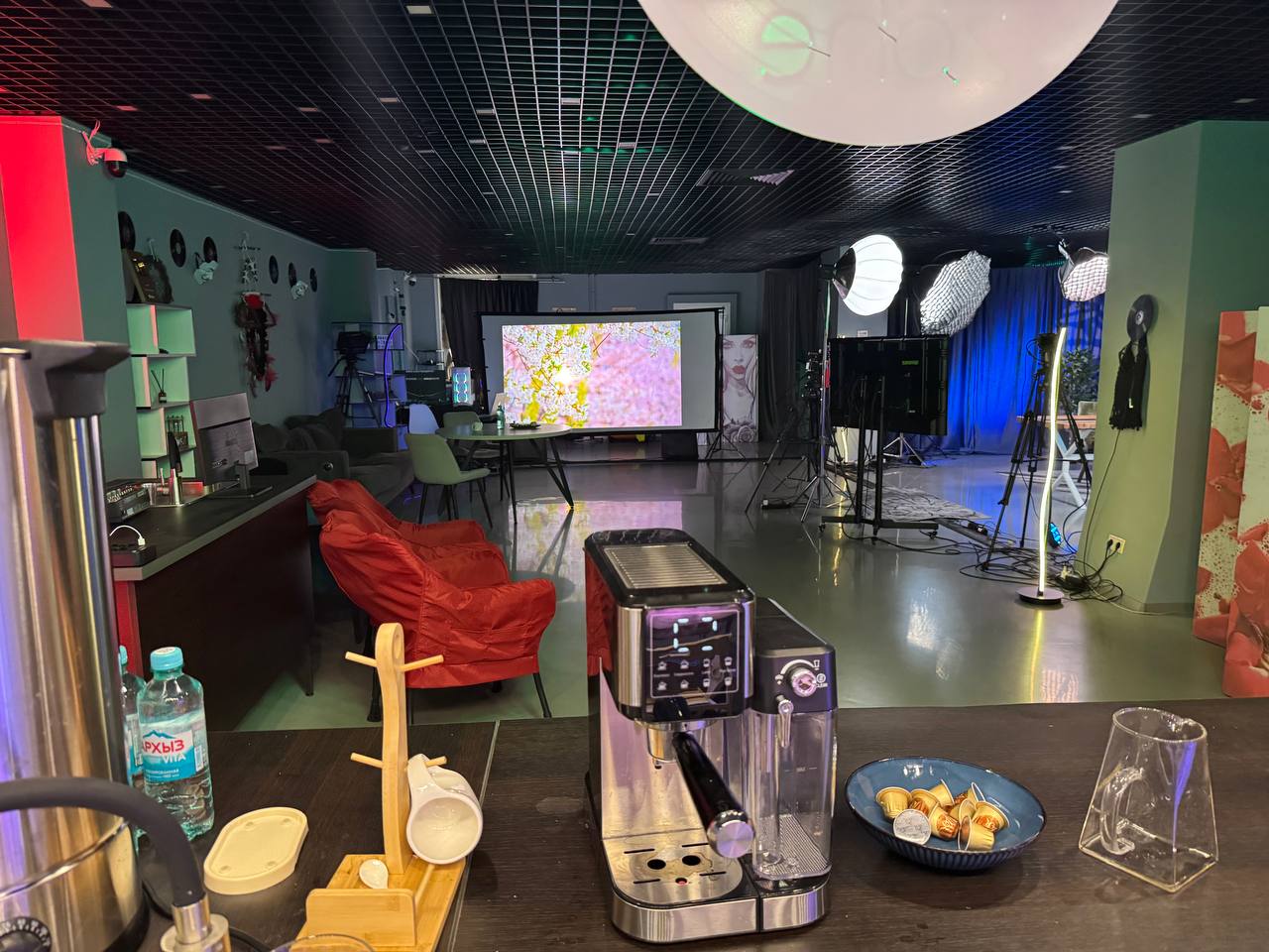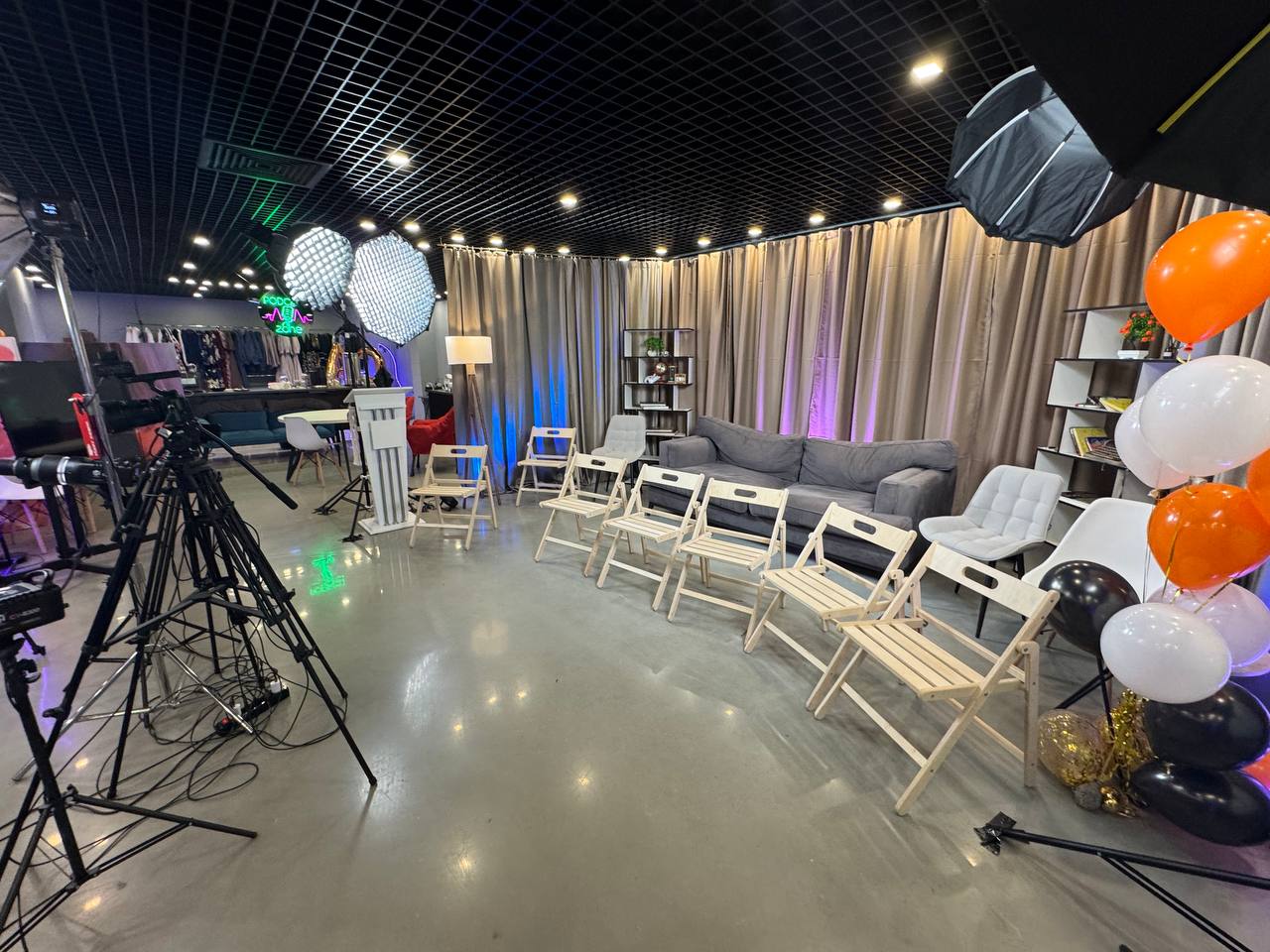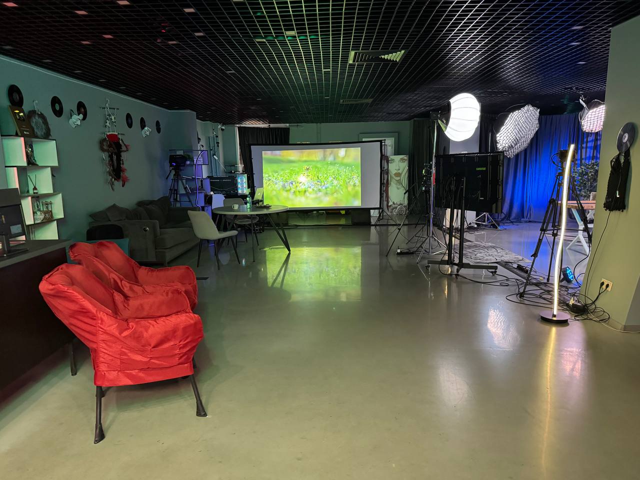 Размещение до 30ти человек зрителей и команды до 6 человек.